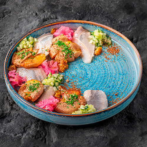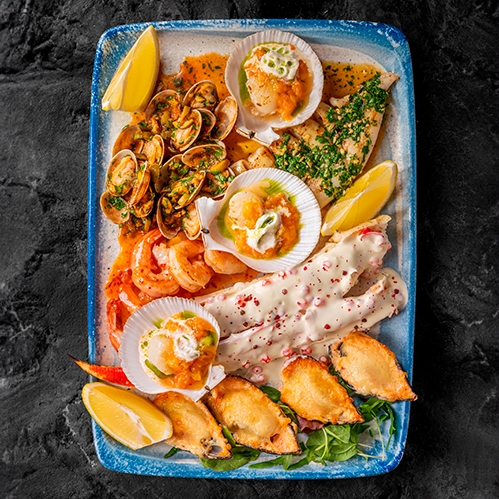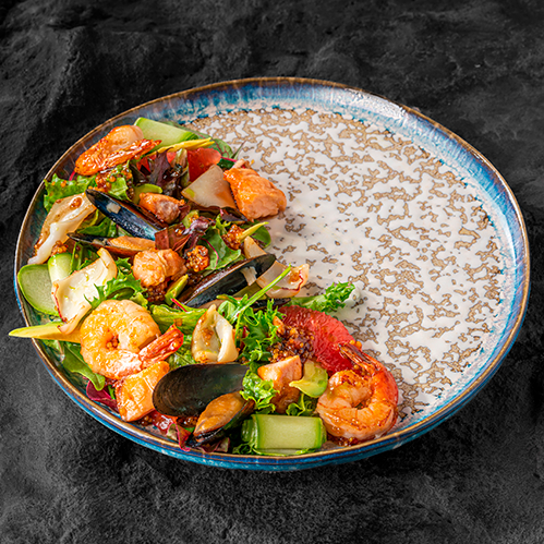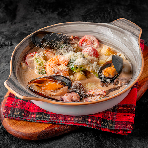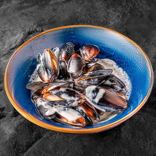 вонголе, голубые мидии, кальмар, мидии киви, тигровые креветки, шампиньоны